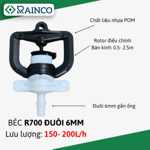 Béc tưới phun mưa R700 đuôi 6 ly Trắng 150- 200L/h