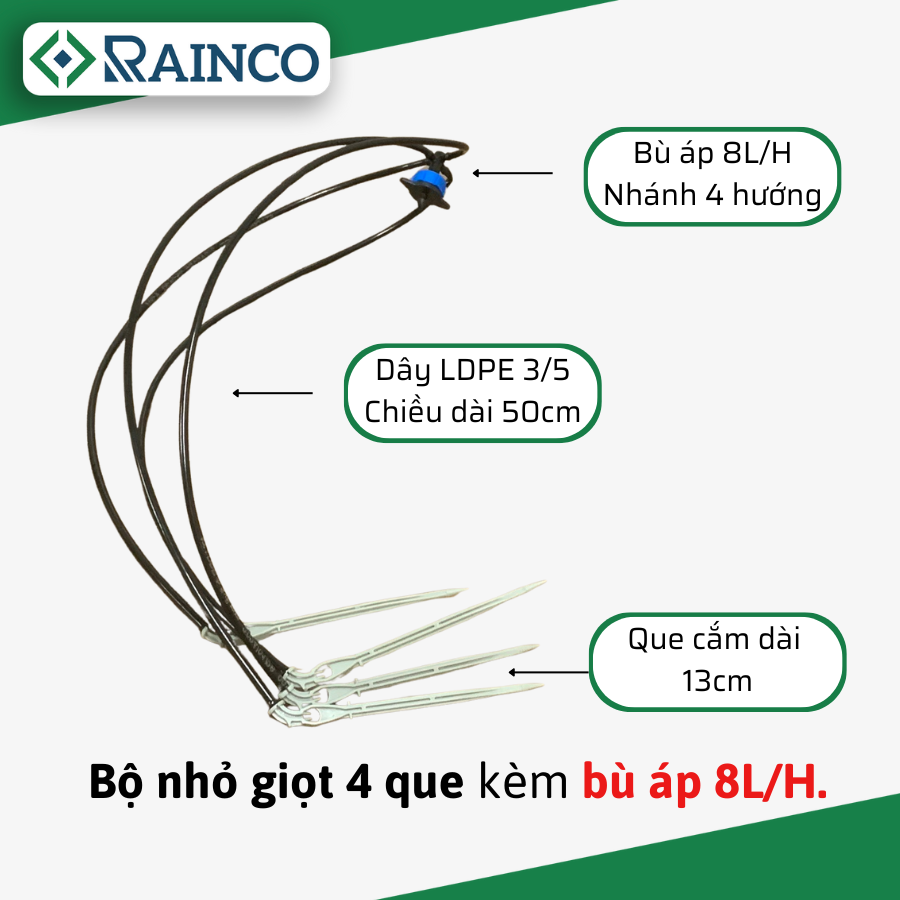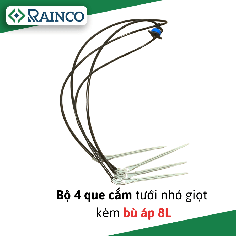 - Trọn bộ sản phẩm bao gồm: Bù áp 8L/H + bộ 4 que cắm xám nhỏ giọt