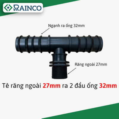 - Tê ren ngoài 27 ra ống LDPE 32 được dùng trong hệ thống tưới cây, tưới phun mưa dùng ống LDPE 32.
