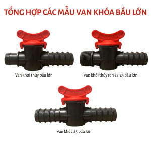 - Kích thước bầu lớn hơn giúp tăng lưu lượng nước qua van, dùng khóa giữa 2 ống LDPE 25 trong hệ thống tưới phun mưa, tưới cây.